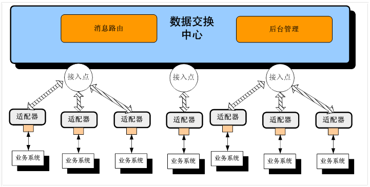 交換平臺的交換橋接子系統指由部門業務應用數據庫(或文件等數據)到前置交換數據庫(或文件等數據)之間的信息交換橋接接口,以完成兩個數據庫(或文件等數據)之間的在線實時交換的系統。