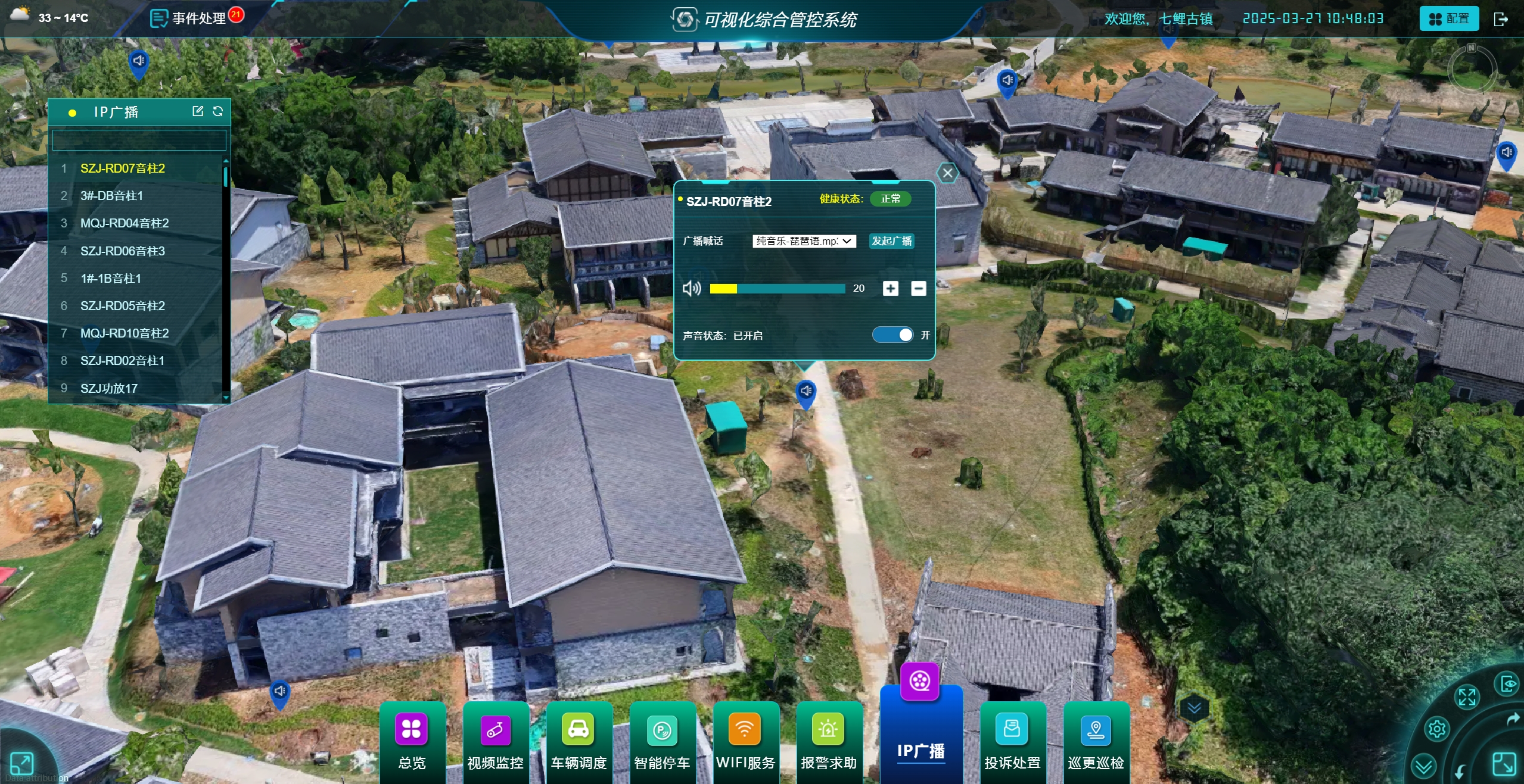 面向景區(qū)管理:景區(qū)地理信息平臺(tái)(景區(qū)地圖采用傾斜攝影三維建模),大數(shù)據(jù)可視化(具備景區(qū)展示、客流與車(chē)流態(tài)勢(shì)、 消費(fèi)統(tǒng)計(jì)、安防、票務(wù)統(tǒng)計(jì)、電商統(tǒng)計(jì)、投訴統(tǒng)計(jì)、會(huì)員統(tǒng)計(jì)、輿情監(jiān)測(cè)等展示功能),可視化綜合指揮平臺(tái)(可視化指揮調(diào)度系統(tǒng)(視頻指揮、車(chē)輛指揮、WIFI服務(wù)、報(bào)警求助、IP廣播調(diào)度、應(yīng)急指揮通訊、投訴處置、安防指揮等模塊)、應(yīng)急指揮管理系統(tǒng)(融合調(diào)度、GIS指揮、應(yīng)急預(yù)案、應(yīng)急事件、應(yīng)急值守、通訊錄等管理功能))。