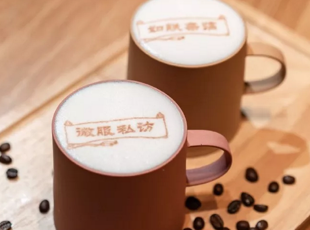 角樓咖啡有著鮮明的故宮特色。比如,以《千里江山圖》為主要的裝修元素,飲品的名字叫“康熙最愛巧克力”“三千佳麗奶茶”“養心咖啡”“佛手香茗”等等,連咖啡上的印花都是“御駕親征”“微服私訪”“朕心甚累”“母儀天下”“眾卿平身”“如朕親臨”等獨具宮廷特色的詞語??Х瑞^內還有一個專門的文創產品展區,可以買到《千里江山圖》的扇子、宮藏文物為封面的筆記本、故宮日歷等文創產品。當然,咖啡館里也有適應博物館文物保護的一些特殊規則,比如為了防火,店內不能給手機充電。