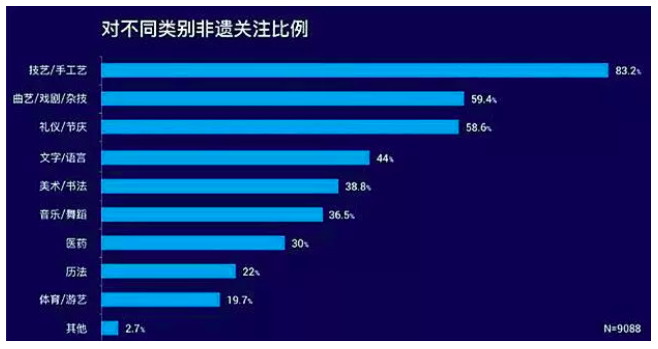 △技藝/手工藝領(lǐng)域是最受關(guān)注的非遺領(lǐng)域