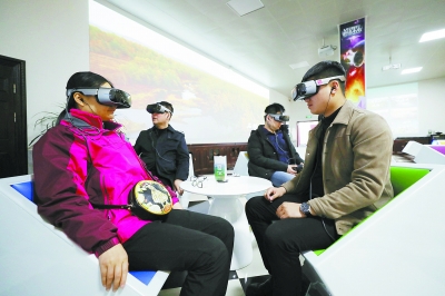 游客在阿爾山國家森林公園體驗VR。