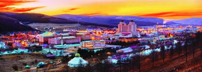 黃昏下的阿爾山市。