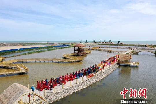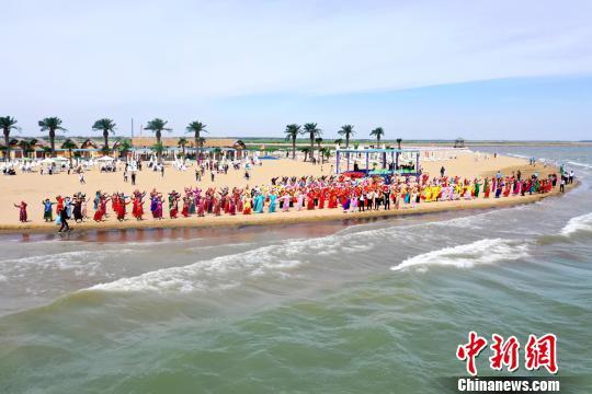 在博斯騰湖大河口景區(qū)西海沙浪景點,來自該縣的500余位能歌善舞的非遺傳承人和民間藝人們,穿著蒙古族盛裝,在舞臺上盡情表演。