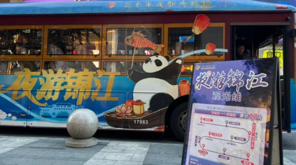 在四川成都,錦江區的 “夜游錦江觀光巴士”項目全新升級。車身以錦江碧波為底色,融入熊貓、廊橋、詩詞等成都元素,宛如一幅移動的城市文化櫥窗。